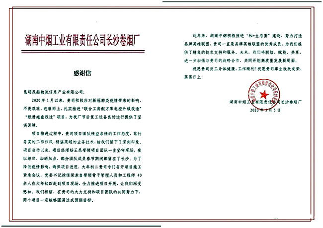 近期,公司陸續(xù)收到用戶發(fā)來的感謝信,肯定物流公司實施團(tuán)隊統(tǒng)一思想、科學(xué)組織,全力以赴做好各項工作,為用戶提供了精良的技術(shù)支持和服務(wù),扭轉(zhuǎn)了施工被動的局面。對公司實施組頑強(qiáng)拼搏的施工風(fēng)范和一心為業(yè)主服務(wù)的理念給與了高度好評。